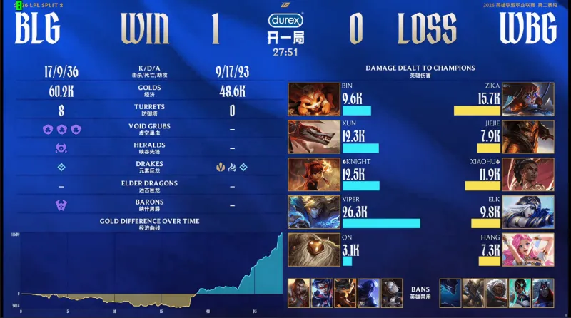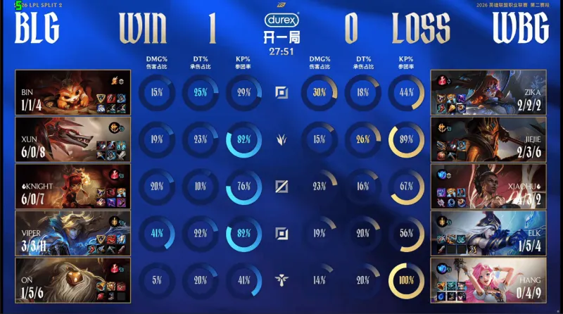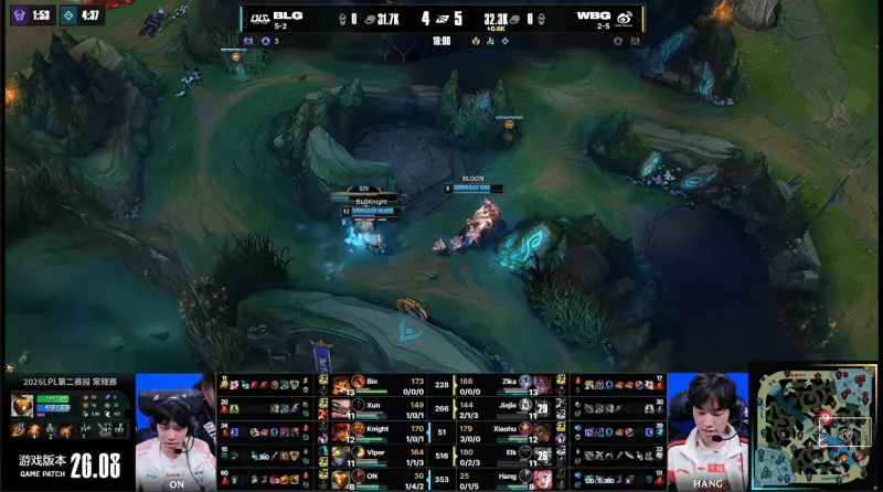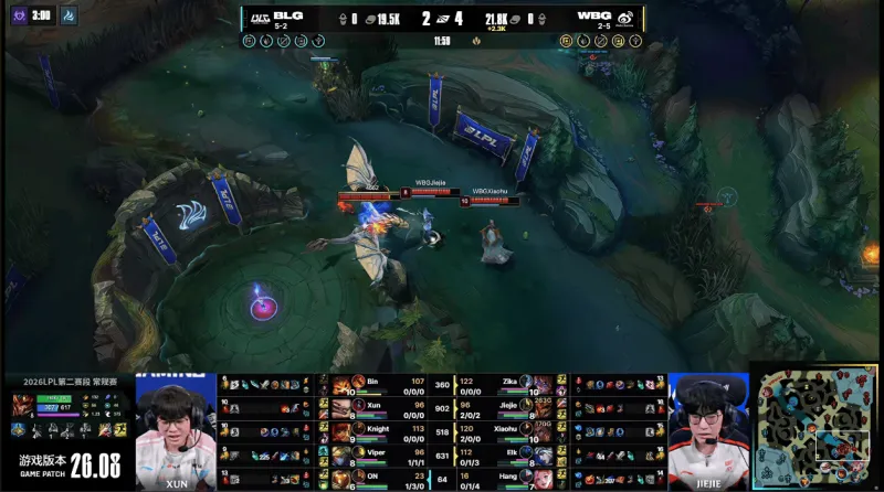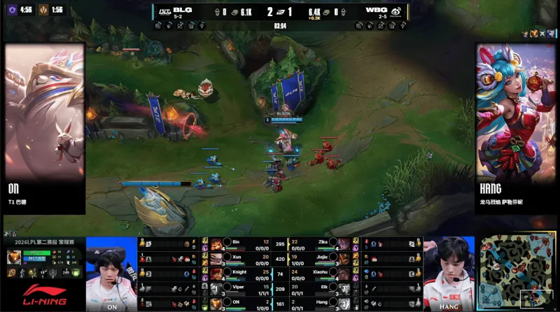 虎扑04月26日讯 GAME1:BLG蓝色方;WBG红色方