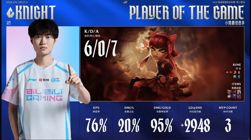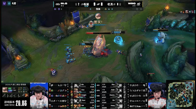 23分钟,Knight安妮关键抢下小龙,BLG中下野三人伤害拉满收割残局