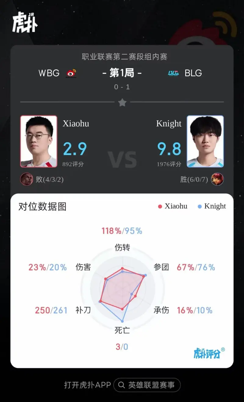 18分钟,WBG率先拿下听牌小龙,Knight果断闪现开团BLG完成0换2